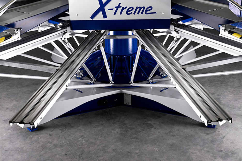 De bijzonder krachtige servomotor in combinatie met het stabiele onderstel in een X-vorm, maakt deze machine sterk. Druk gemakkelijk en met de meeste precisie al uw textiel. De machine kan worden aangestuurd volgens een ultramodern hybride touchscreen systeem. Met een tablet kan de machine worden bediend. Daarnaast zit er een speciale Skype-functie op de tablet waarmee storingen kunnen worden doorgenomen.